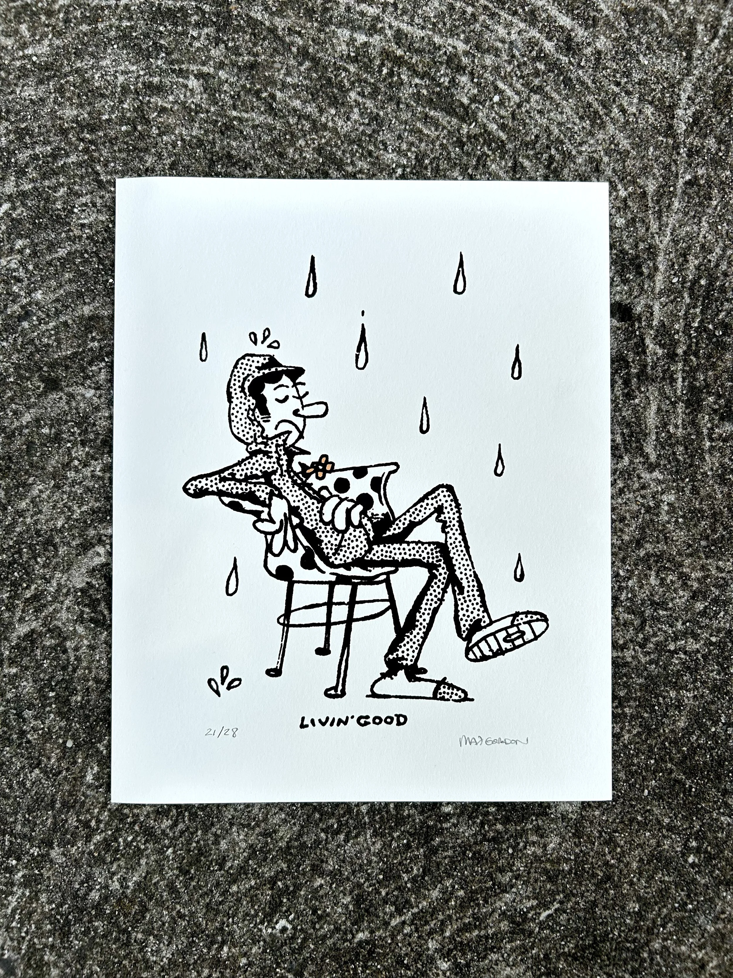 Categories: Select a Category Patches Pins Hats Original Pieces Posters Livin' Good Ball Club Belmar Stickers Screen Prints Screen Prints Billiard Etiquette Poster - Brown and Gold $60.00 Livin' Good SurferCharacter - 24x36 2 color screen print flower coat black orange wall art home decor large oversized simple dots floral $135.00 11x14 $35.00 11x14 $35.00 11x14 $35.00 8x10 $25.00 8x10 $25.00 8x10 $25.00 8x10 $25.00 8x10 $25.00 11x14 $35.00 8x10 $25.00 20x30 $100.00 20x30 $100.00 8x10 $25.00 Sold out 20x30 $100.00 24x36 $140.00 24x36 $140.00 20x30 $100.00 24x36 $140.00